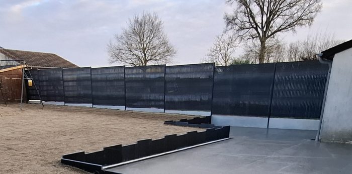 Clôture avec grillage souple, semi rigide, panneaux rigide de couleurs et poteaux assortis ou selon vos goûts.