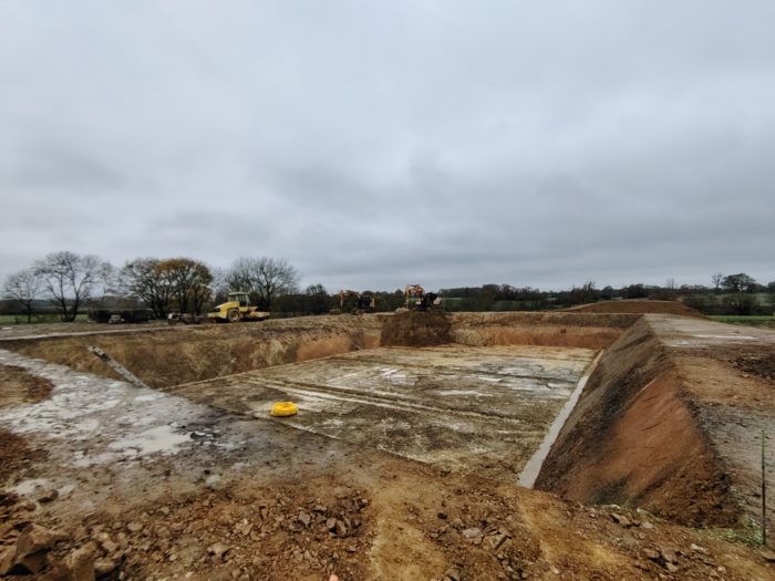 Terrassement fourniture et pose d’un drainage fond de fosse, de bandes de dégazage, d’un géotextile et pose de la géomembrane. Mise en place d’une clôture de 2 ml de haut tout autour de la fosse (obligatoire par mesure de sécurité).