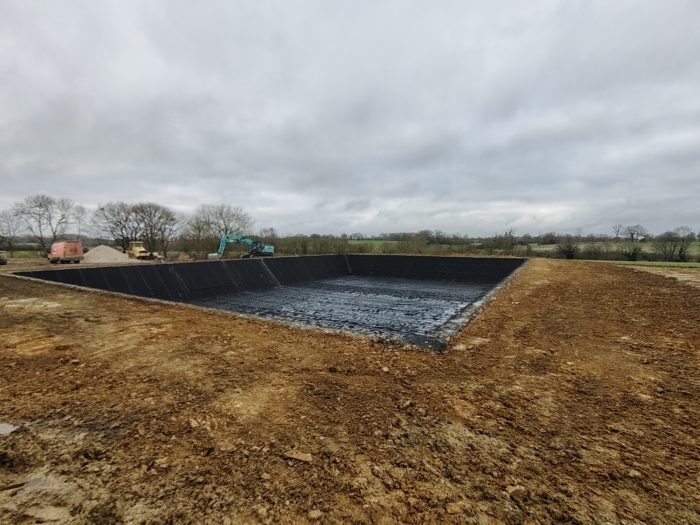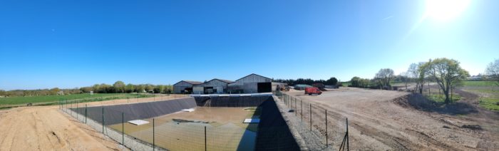 Terrassement garantie décennale et géomembrane en 1,2 mm garantie 20 ans.